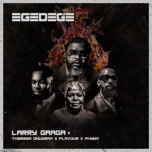 Larry Gaaga collaborates with Phyno, a Nigerian indigenous rapper, Flavour, a highlife singer and composer, and Queen Theresa Onuorah, the leader of the Unubi Egedege dance ensemble, on the Masterkraft-produced tune “Egedege.” Pete Edochi, a veteran Nollywood actor, plays an Outro at the end of the song.